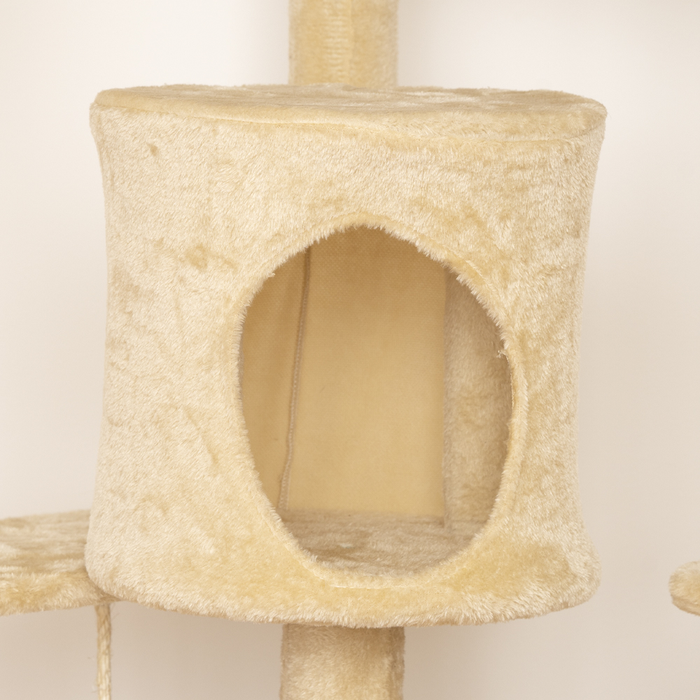 Zasnovano s premišljenostjo, praskalnik COOLCAT ponuja večnadstropno igralno strukturo, ki omogoča mačkam praskanje, plezanje in počivanje. S trpežnimi stebri za praskanje, udobnimi ležišči in igralnimi vrvicami, ta mačje drevo zagotavlja popolno okolje za igro in sprostitev. Njegov sodoben dizajn se brezhibno ujema z vsakim domačim dekorjem, hkrati pa spodbuja zdravo telesno in duševno stimulacijo vašega kosmatinca. Mačje drevo COOLCAT združuje vse, kar potrebuje aktivna mačka: varnost, udobje in zabavo v enem elegantnem paketu.