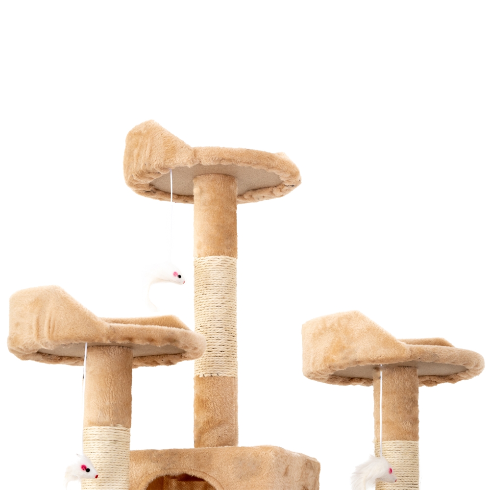Na vrhnjem delu so tri ležišča, ki nudijo udobje. Celotno drevo je prekrito z udobnim mehkim plišem, ki bo vaše ljubljenčke zaposlil za več ur. Trpežen material bo poskrbel za večletno uporabo.